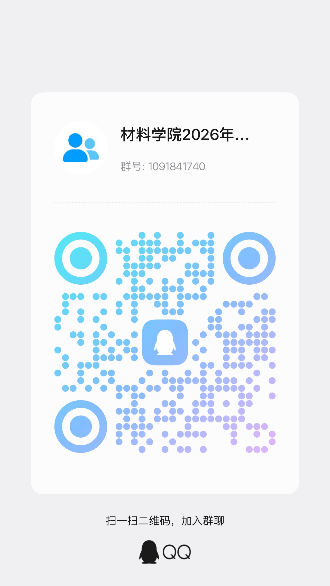 面试时间暂定2026年3月25日上午8:30开始,请进入面试环节的同学务必于3月24日上午10:00前加入QQ群“材料学院2026年转专业面试工作群”,群号:1091841740。(加群时验证消息标注学号姓名)面试详细时间及分组将在群内通知。